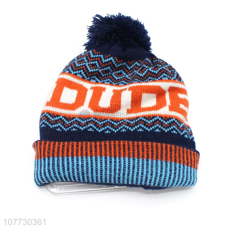 Latest arrival kids winter hat boys girls pompom jacquard beanie hat