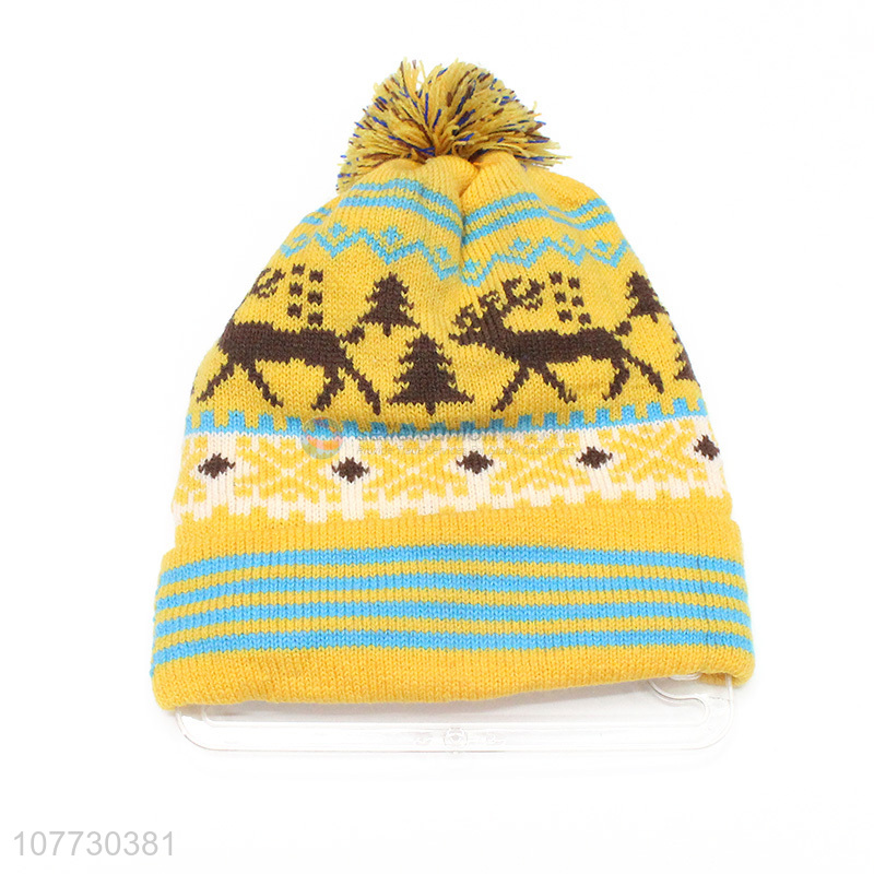 Good quality children winter pompom beanie toddler jacquard knitting cap