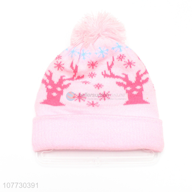 Hot sale children jacquard beanies kids winter hat with pompom
