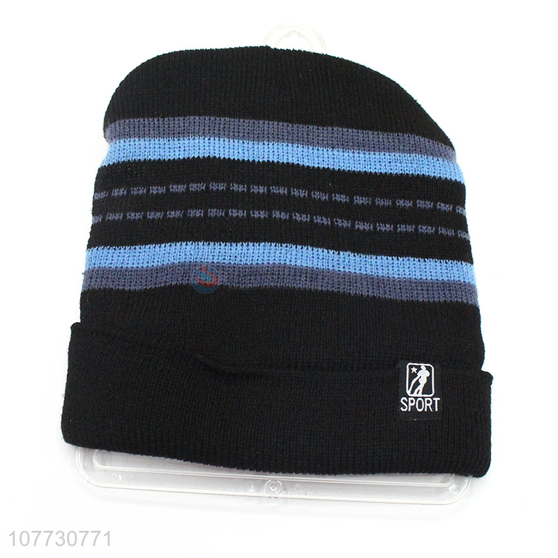 High quality men winter knitted sport beanie hat with fleece lining