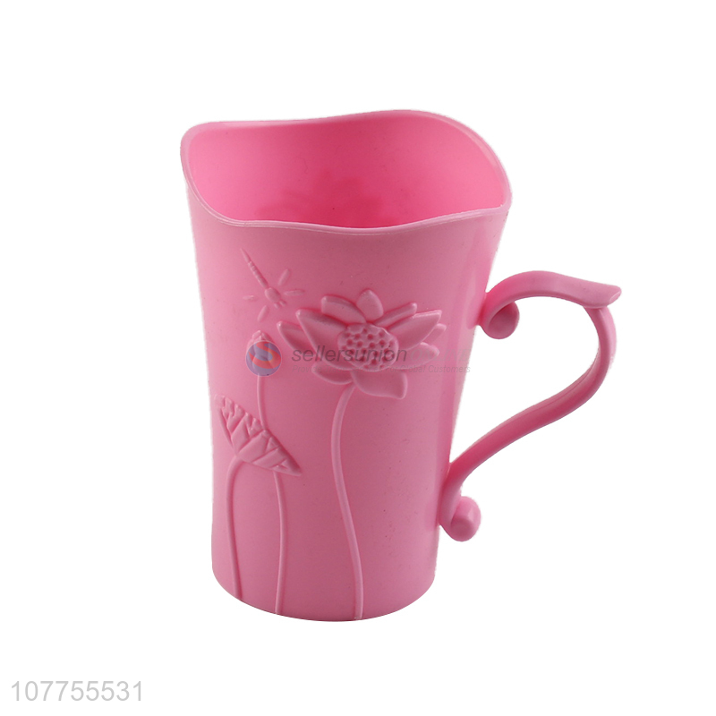 High Quality Pink Plastic Water Cup Fashion Juice Cup With Handle