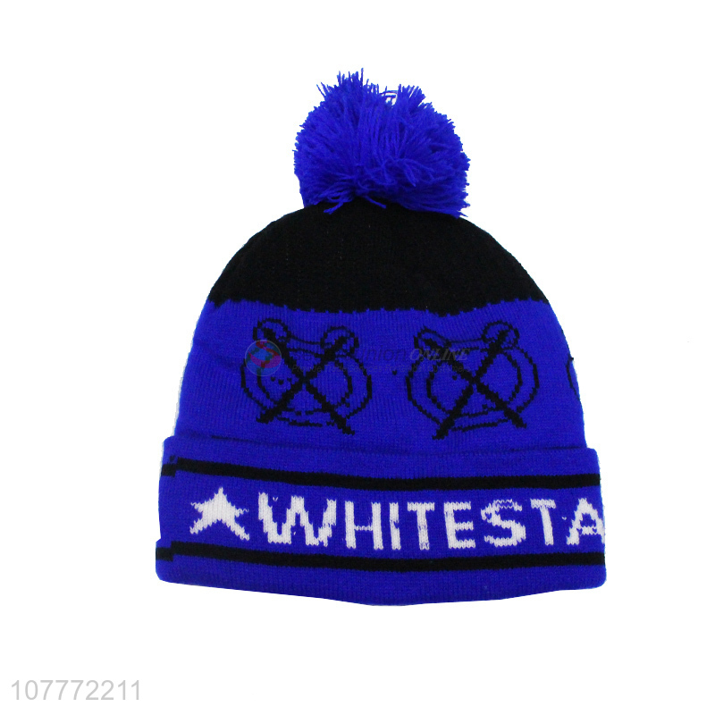 Fashion style blue winter knitted hat warm outdoor sports cap for men