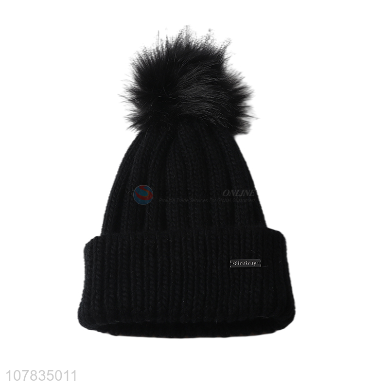 Wholesale vendor women winter warm pompom hat hair bulb knitting cap