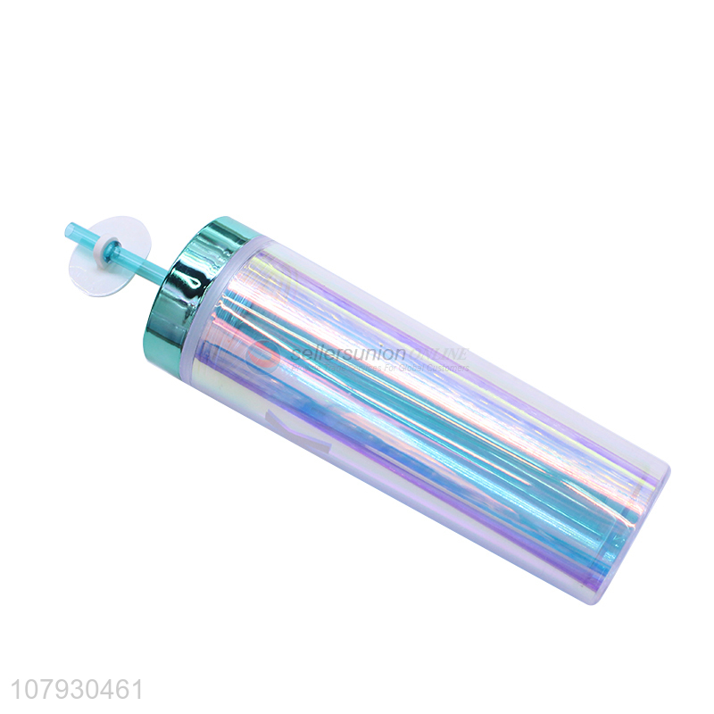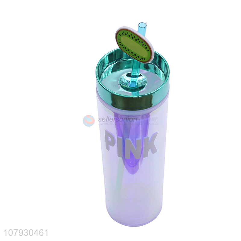 • Cheap price plastic double wall straw water cup water bottle