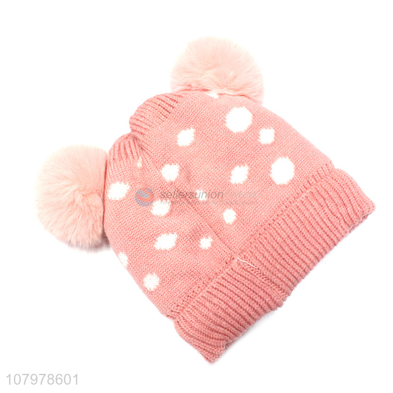 Good quality kids fleece lined thick beanie winter warm knitted hat
