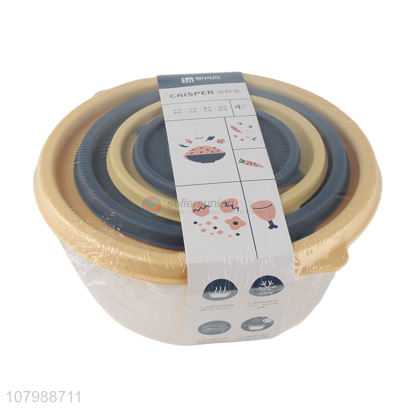 Online wholesale 4 pieces round plastic kitchen food storage box preservation box
