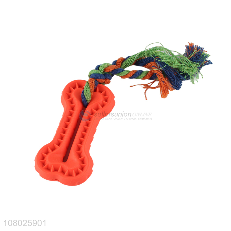 Good sale orange creative toy silicone pet chew toy molar stick with rope
