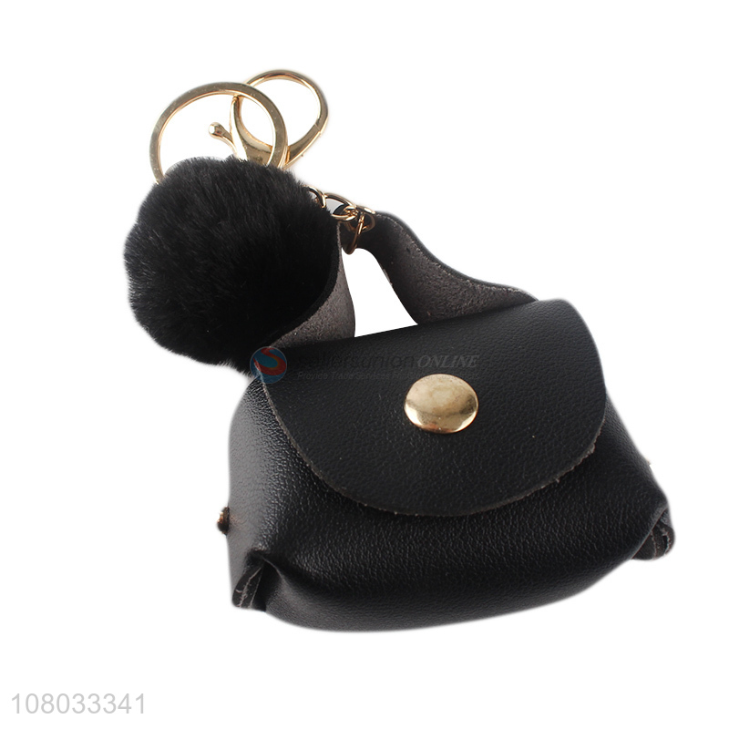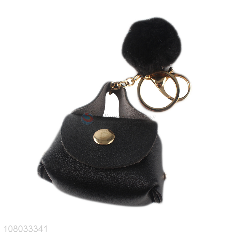 Yiwu export black simple portable coin purse keychain pendant