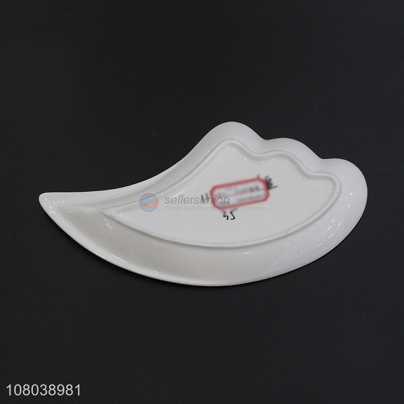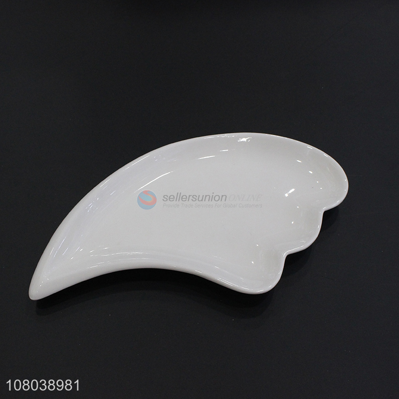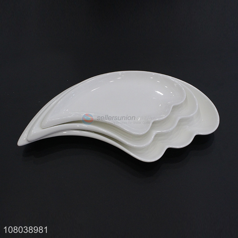 Good sale white creative ceramic plate 3-leaf wave plate