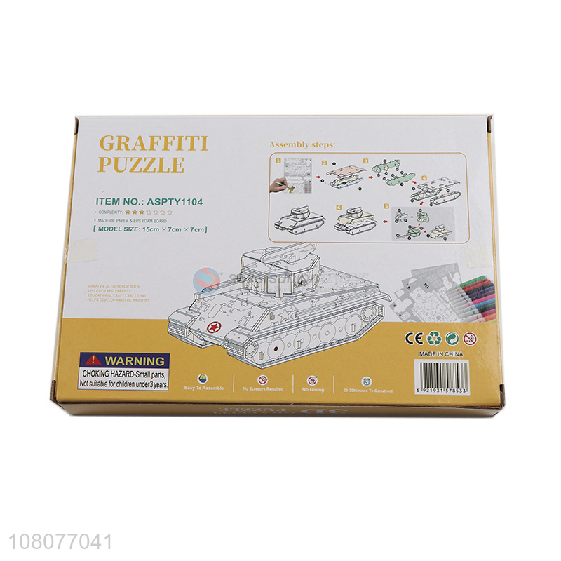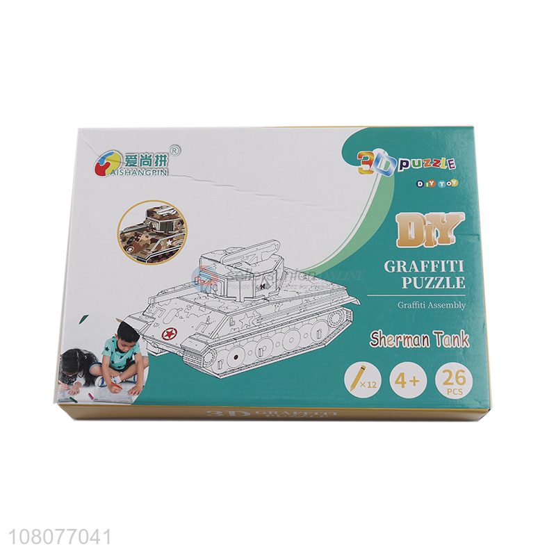 New design DIY painting puzzle 3D sherman tank jigsaw puzzle for gifts