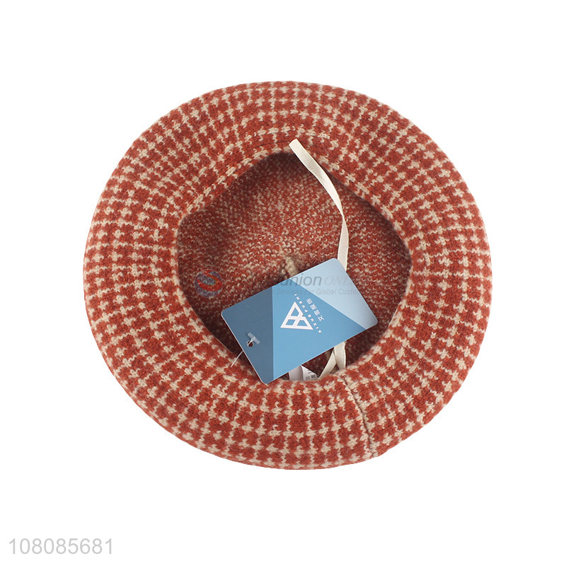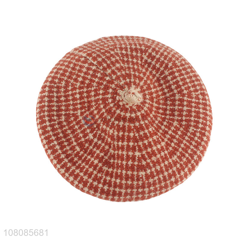 New design orange wool jacquard houndstooth mushroom hat ladies beret