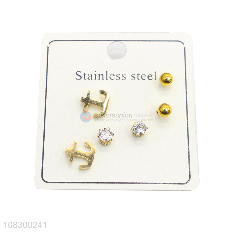 Custom 3 Pairs Stainless Steel Ear Stud Fashion Earrings Set