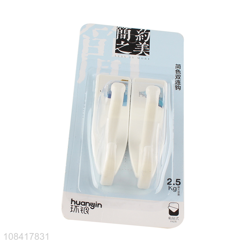Factory direct sale white double hooks home wall sticky hooks