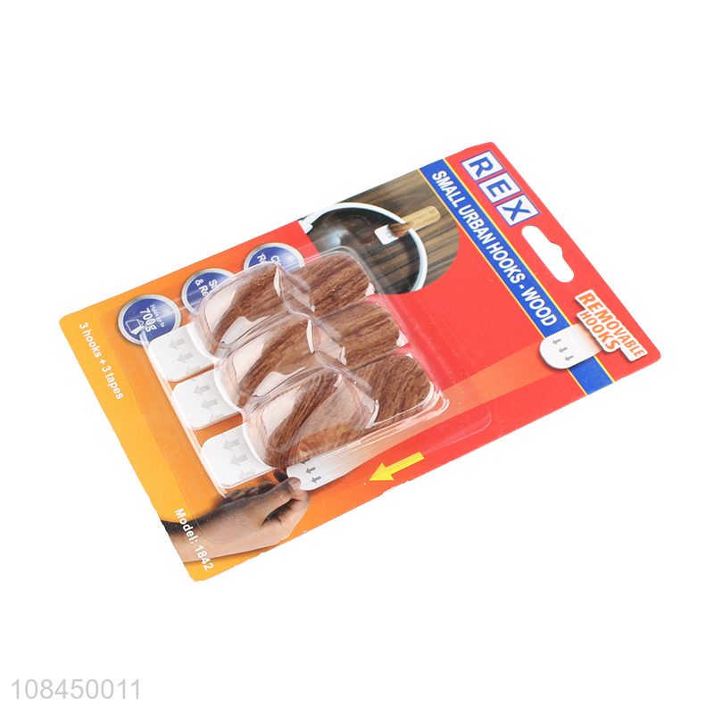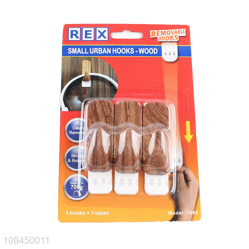 New arrival removable wood grain hooks home sticky hooks