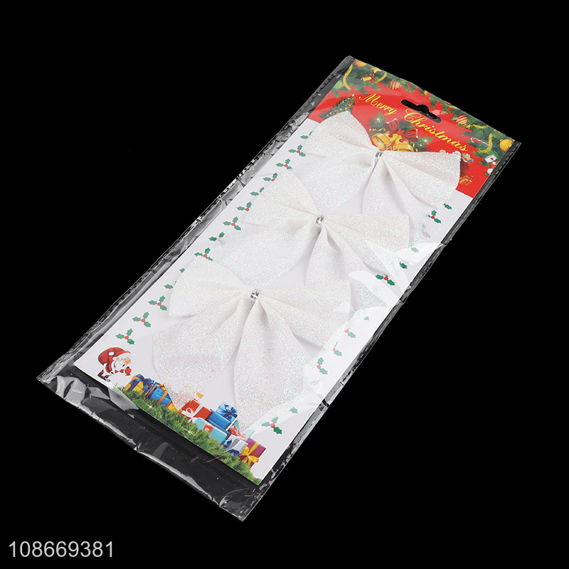 Top products 3pcs white decorative bowknot for christmas tree