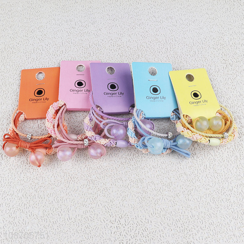 • Best selling candy color bowtie braided hair rope colored bead hair ring for girls