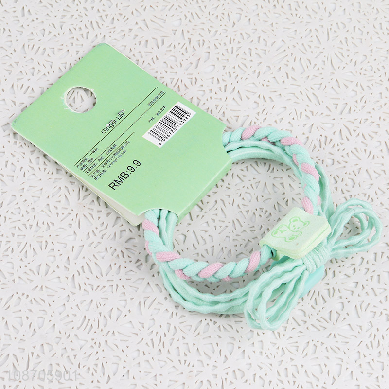 • Best selling candy color bowtie braided hair rope colored bead hair ring for girls