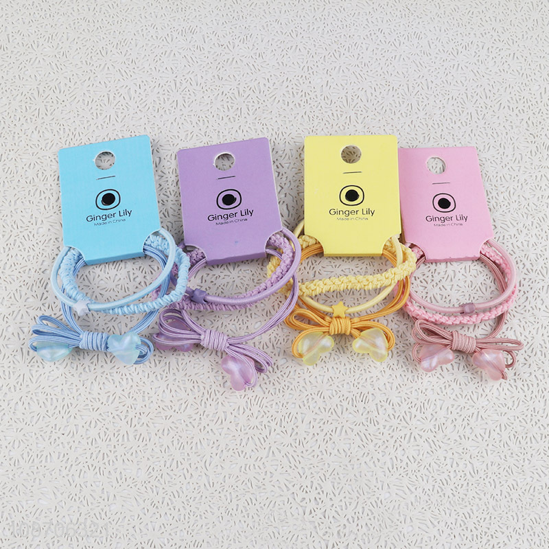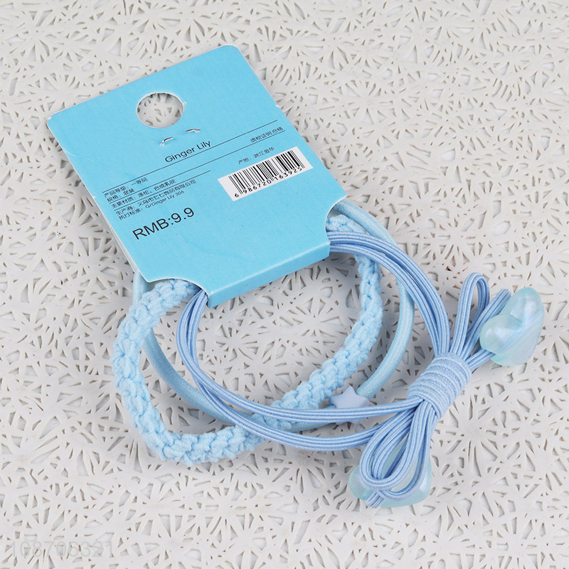 Top selling candy color double heart hair rope elastic hair ring for headdress