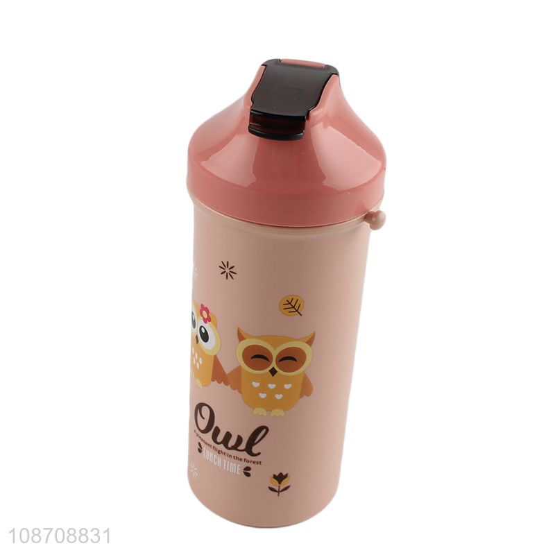 Hot selling 500ml cartoon printed plastic kids water bottle with straw