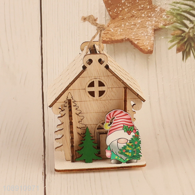 Wholesale Led Christmas Wooden House Christmas Tree Hanging Ornaments