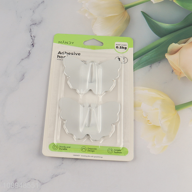 Hot Selling 2PCS Butterfly Shaped Metal Sticky Hooks Wall Hooks