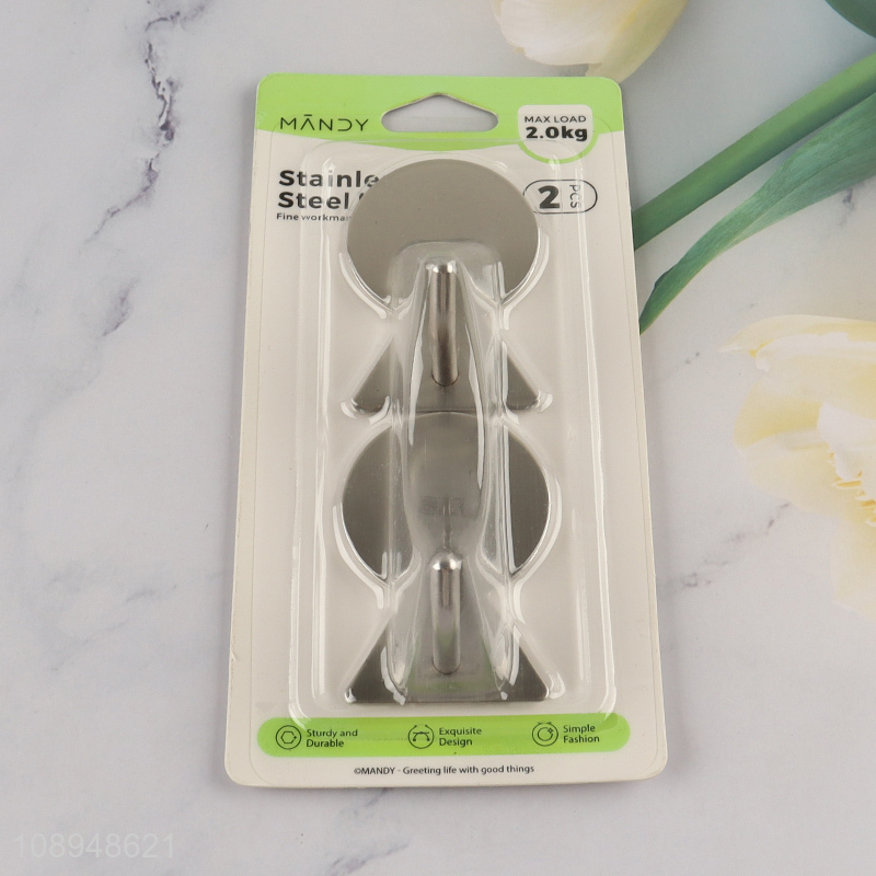 Good Quality 2PCS Stainless Steel Sticky Hooks Wall Hanging Hooks