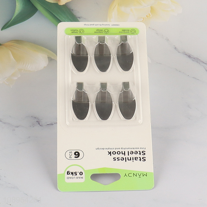 New Arrival 6PCS Oval Metal Utility Sticky Hooks for Hanging Towels