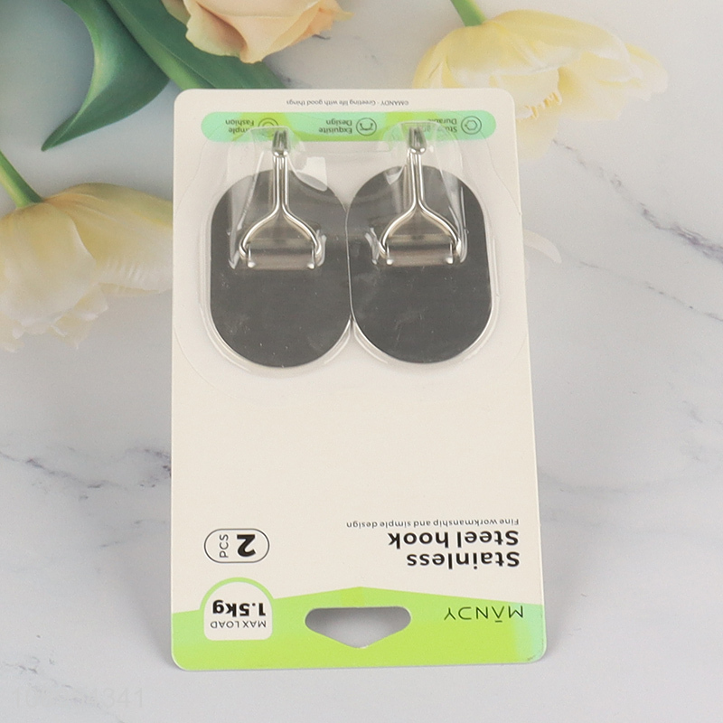 Good Quality 2PCS Stainless Steel Adhesive Hooks Heavy Duty Utility Hooks
