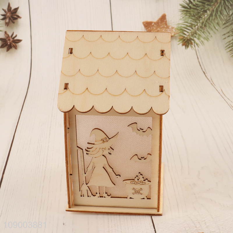 Wholesale Lighted Halloween Wooden House Wooden Hanging Ornaments for Home Decor