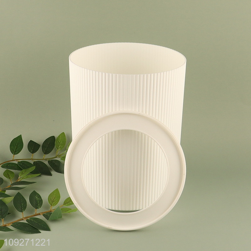 Good price white round plastic waste bin with bamboo lid