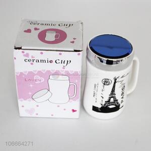 Wholesale fashion Eiffel Tower printed ceramic cup with lid